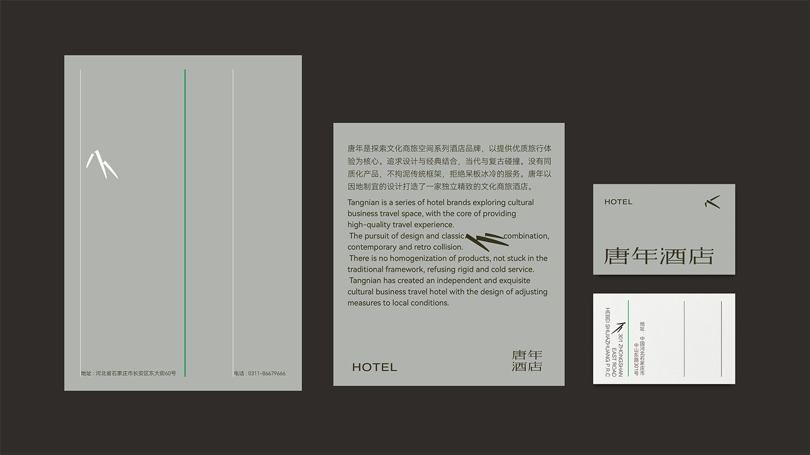 字體標志將竹子的正直、優美的生長性蘊于其中中,彰顯品牌無限發展的生命力。系列圖形用竹葉作為設計元素,竹葉形狀以現代簡約的方式進行創新,保留竹葉的基本形態和線條特點。竹葉組合結構是用三片竹葉進行組合和搭建山、石、竹、鳥的意象,一山一水、一石一木間,自然與人文自由生長相互交融。寫意三筆,勾勒走勢,盡得竹林氣韻,極簡、也極雅余下大面積留白,引人入勝。營造出獨特的審美效果,給人一種寧靜、自然、舒適的感覺。