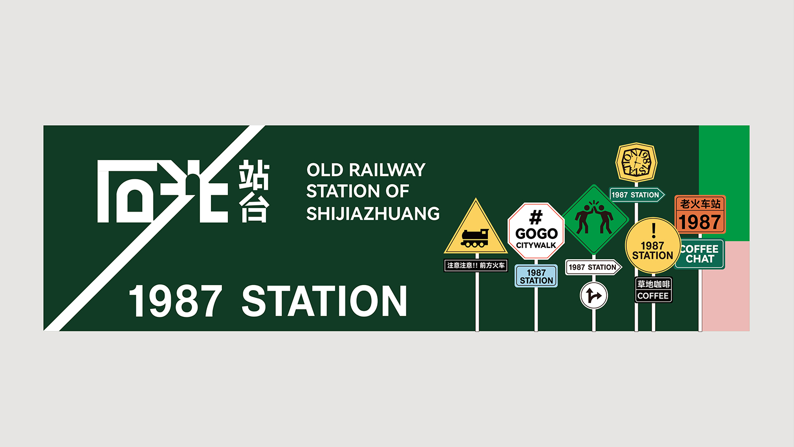 “石光”二字作為設(shè)計(jì)的核心,與“時(shí)光”諧音,時(shí)光隧道象征著歷史的流轉(zhuǎn)與歲月的變遷。將橋洞的形狀與“石光”二字的筆畫相結(jié)合,形成了一種獨(dú)特而富有辨識(shí)度的設(shè)計(jì)效果。通過(guò)巧妙的筆畫調(diào)整和形狀設(shè)計(jì),我們確保了字體在保持整體美感的同時(shí),能夠自然地融入橋洞元素,形成和諧統(tǒng)一的設(shè)計(jì)效果。 這種設(shè)計(jì)不僅讓字體看起來(lái)更加生動(dòng)、有趣,還能讓人們聯(lián)想到石家莊老火車站的悠久歷史。